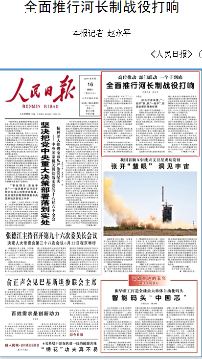 人民日?qǐng)?bào):全面推行河長(zhǎng)制戰(zhàn)役打響
